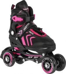 Avec cet ensemble multifonction 4‑en‑1, profitez au maximum de chaque saison : changez facilement les châssis et l’enfant peut rouler en inline, en quad ou patiner sur glace. La construction semi‑souple de la chaussure avec ventilation et semelle intérieure profilée en mousse EVA offre confort et maintien de la cheville, tandis que le réglage de taille à 5 positions (34–38) garantit une longue durée d’utilisation.