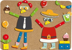 Un jeu de marteau amusant et créatif qui développe la motricité fine, la créativité et l'imagination des enfants. Comprend un riche ensemble de pièces en bois, des clous, un marteau et un tableau en liège imprimé pour des créations infinies.