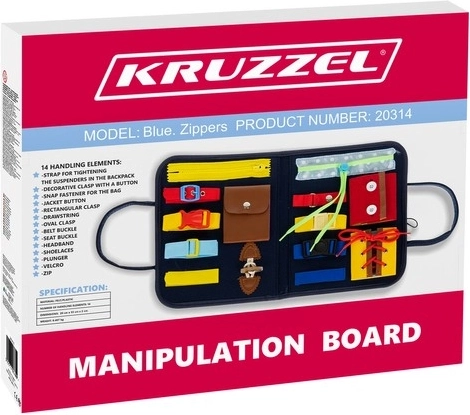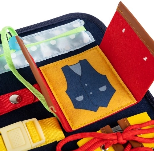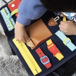 Comprend 14 éléments variés dont des fermetures éclair, boucles, boutons et autres, qui favorisent les compétences pratiques et l'autonomie.