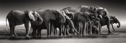 Une photographie noir et blanc saisissante d’éléphants au bord de l’eau confère à l’œuvre terminée une allure intemporelle et s’intègre parfaitement aux intérieurs modernes.