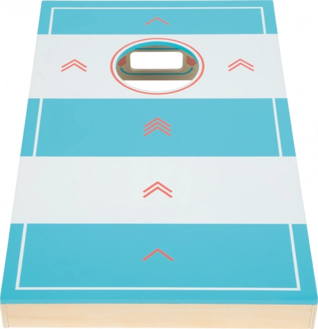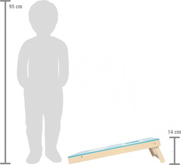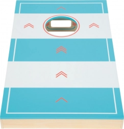 Cette planche de jeu en bois de qualité réunit deux activités populaires dans un format compact. D’un côté, jouez au cornhole – lancer des sacs en tissu dans un trou, de l’autre côté au hockey de table – propulser le palet à l’aide d’un élastique vers des cibles. Grâce au marquage des points par flèches au lieu de chiffres, même les plus jeunes peuvent compter le score.