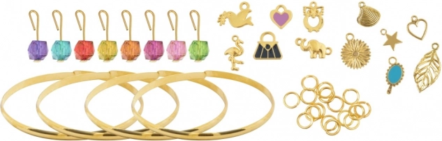 - 4 bracelets, 12 breloques, 8 breloques avec strass multicolores, anneaux pour fixer les breloques