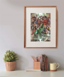 Une scène colorée de super-héros sublimée par une impression de qualité et un carton robuste.