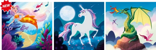 Le set Clementoni offre un assemblage ludique sur le thème des créatures fantastiques, stimulant l’imagination et la créativité. Trois puzzles distincts avec le même nombre de pièces et les mêmes dimensions, faciles à réaliser même pour les plus petits, qui renforcent ainsi leur concentration et leur motricité fine.
