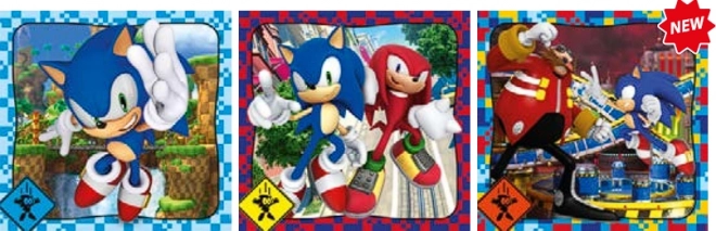 Amusant triple pack de puzzles pour enfants à l’effigie de SONIC par CLEMENTONI : 3 images carrées de 48 pièces. Pièces parfaitement ajustées, impression de qualité et développement de la motricité fine et de la concentration.