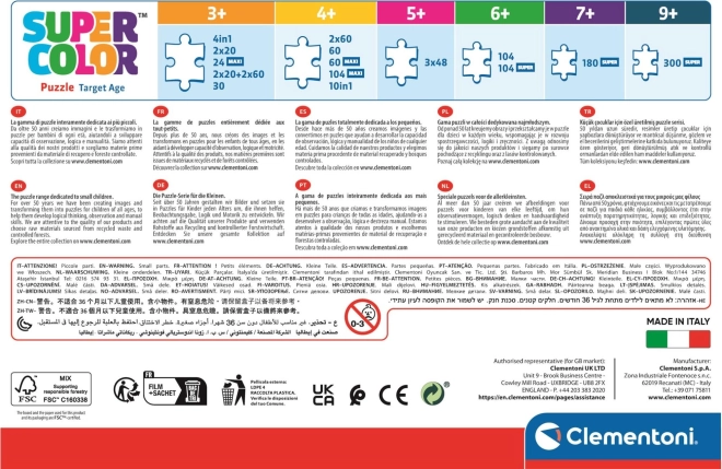 Le puzzle CLEMENTONI SuperColor offre aux enfants un divertissement créatif avec leurs héros préférés de MIRACULOUS. Ses 104 pièces solides, de taille parfaitement équilibrée, encouragent patience, concentration et motricité fine. L’impression de haute qualité garantit des couleurs durables et des détails nets qui séduisent au premier regard.