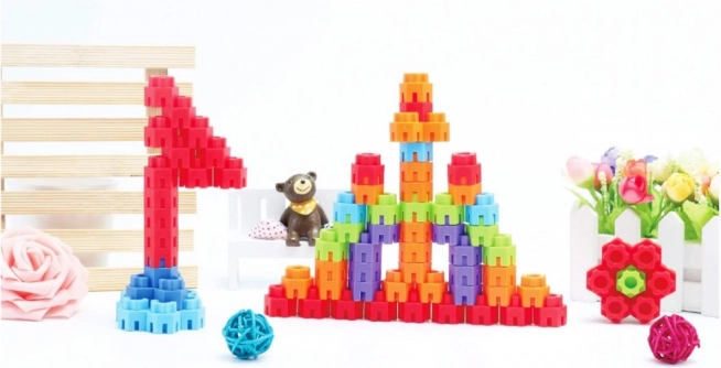 Ce jeu de construction comprend 100 éléments dans des teintes vives, comme le rouge, le bleu, le vert, l'orange et le jaune. Les enfants peuvent créer différentes structures et développer leurs capacités créatives et motrices. Les couleurs vives attirent l'attention et encouragent de nouveaux jeux.