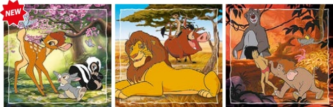 Ce coffret comprend trois puzzles indépendants avec des motifs populaires des films DISNEY, qui raviront les petits amateurs de casse-têtes. Grâce à la même taille et au même nombre de pièces, les images sont facilement interchangeables et les enfants peuvent s’exercer à assembler à répétition sans frustration inutile.