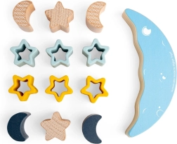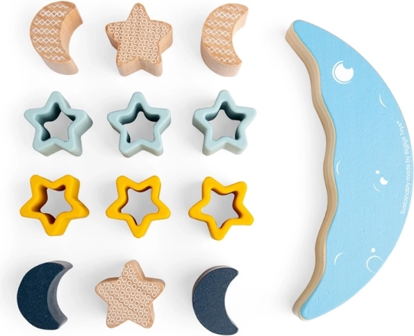 Le jeu moteur Balancing Moon est conçu pour développer la motricité fine et l'imagination des enfants. Les pièces en bois en forme d'étoiles et de croissants de lune ne servent pas seulement à un assemblage amusant, mais améliorent également la coordination œil-main. Grâce à l'utilisation de matériaux durables, ce jouet est non seulement sûr, mais aussi écologique.