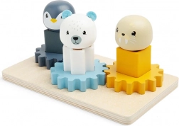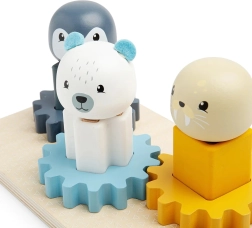 Comprend un pingouin, un morse et un ours polaire que les enfants peuvent placer sur des socles de couleurs différentes et faire pivoter.