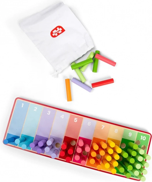 Les bâtonnets de comptage arc-en-ciel sont un choix idéal pour les enfants dès 18 mois qui souhaitent apprendre à compter et à reconnaître les couleurs. Le jouet comprend un plateau en bois avec des sections colorées et 55 bâtonnets colorés à insérer dans ces sections. Toutes les parties de ce produit sont fabriquées à partir de bois certifié FSC®, elles sont donc non seulement sûres pour les enfants, mais aussi respectueuses de l'environnement.