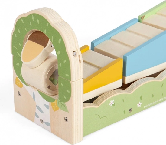 Permet aux enfants d’explorer et d’apprendre par le jeu interactif en plaçant un rouleau hochet et en suivant son mouvement le long de la rampe.