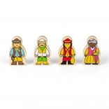 Des personnages colorés en bois ajoutent des éléments de jeu de rôle et encouragent l’imagination des enfants.