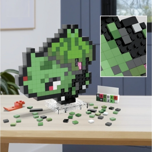 Profitez d’un montage ludique et d’un look unique en esthétique 8-bit. Les pièces pixel capturent fidèlement la forme et les couleurs du célèbre Pokémon BULBIZARRE et créent un look rétro accrocheur, qui se fait remarquer sur une étagère, un bureau ou dans une vitrine.