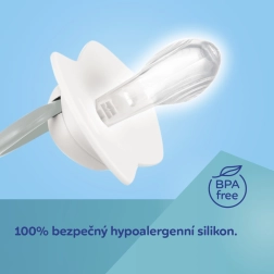 - Tétine symétrique en silicone – hypoallergénique, sans goût ni odeur.
