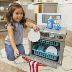 Les petits assistants adoreront le design réaliste du lave-vaisselle gris avec des accents rouges, qui ressemble à de véritables appareils. Après avoir ajouté le « produit » et tourné le bouton fonctionnel, la lumière s’allume et des sons authentiques de lavage se déclenchent. Les enfants peuvent ouvrir les portes, faire coulisser les paniers et charger ou décharger la vaisselle, développant ainsi leur motricité et leur imagination.
