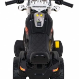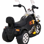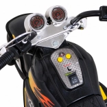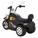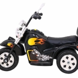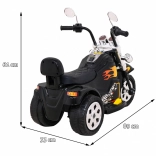 Une moto électrique pour enfants au style chopper, avec une conception tricycle stable, une conduite sûre en marche avant et arrière, et de séduisants motifs de flammes. Grâce à son moteur de 25 W, sa batterie 6 V / 4,5 Ah et son phare avant, elle est idéale pour les premières expériences de conduite. De larges roues en plastique et une selle confortable assurent stabilité et confort pendant la conduite.