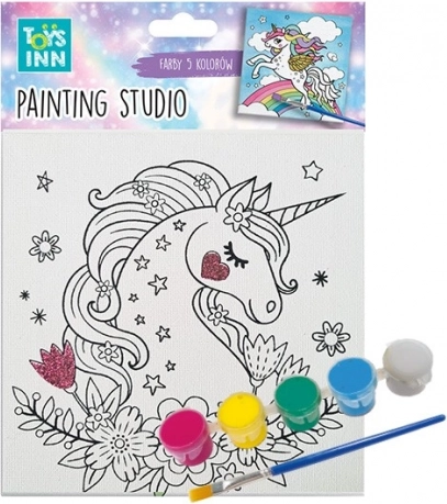 Découvrez la joie de créer avec un kit de peinture au motif licorne. Contient une toile 15 × 15 cm, un pinceau et 5 couleurs (blanc, jaune, rose, bleu, vert) – idéal pour les enfants et les débutants. Peinture facile, développement de la créativité et divertissement pour le temps libre réunis dans un seul set.