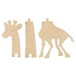 Les pièces s’emboîtent parfaitement et, une fois assemblées, forment une girafe stable prête à être fixée au mur.