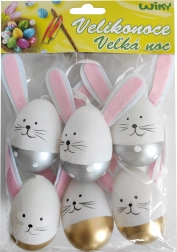 Œufs peints en plastique décoratif à suspendre 6 cm, 6 pcs