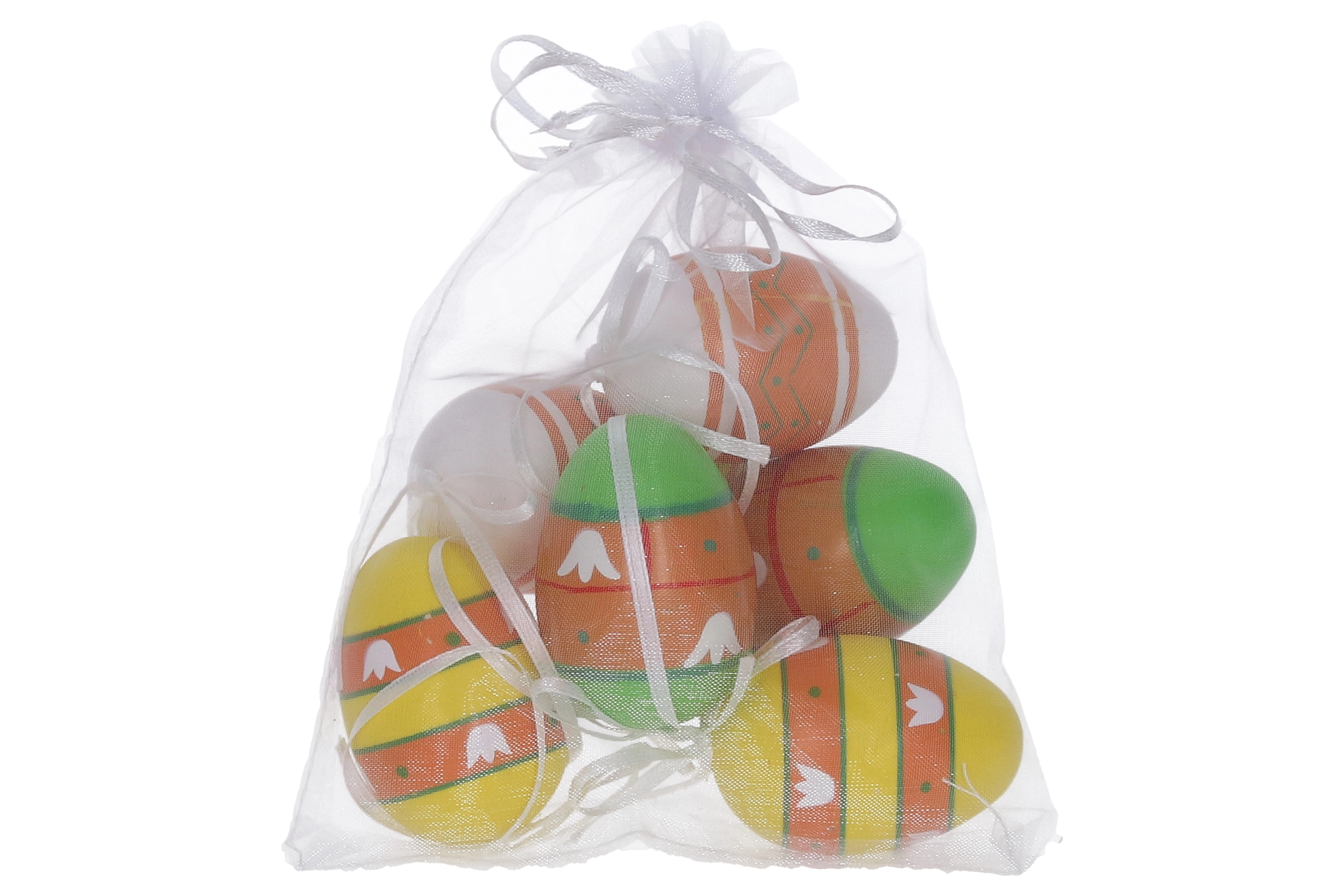 Ravivez vos décorations avec ces magnifiques œufs en plastique peints de 6 cm, emballés par 6 dans un élégant sachet en organza.