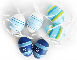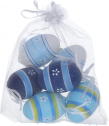 Œufs décoratifs en plastique qui embelliront votre maison. Chaque œuf mesure 6 cm et l'emballage contient 6 pièces dans un élégant sac en organza.