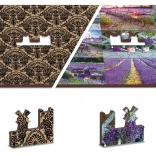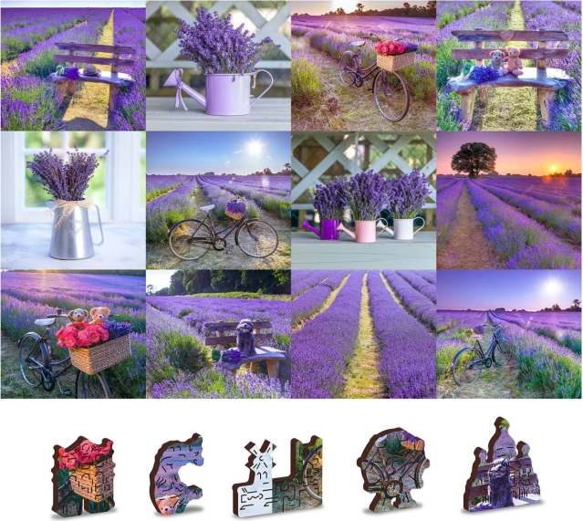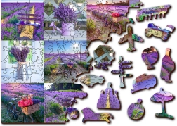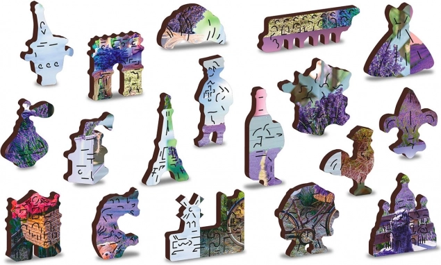 Vivez une belle aventure avec le puzzle en bois WOODEN CITY au motif France lavande. Grâce aux pièces découpées au laser aux formes uniques représentant des animaux, des bâtiments ou des objets, l’assemblage prend une nouvelle dimension. Au verso, vous trouverez un motif répétitif qui facilite l’assemblage par les formes.