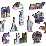 Le puzzle comprend des pièces en forme de monuments, d’objets ou d’animaux, appréciées aussi bien par les enfants que par les adultes.