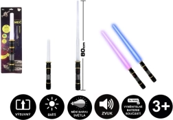 Le sabre mesure 80 cm et se replie facilement pour le transport ou le rangement. Des capteurs intégrés assurent des sons lors des mouvements ainsi que des sons à l’impact sur une cible. L’alimentation est assurée par 3× piles AAA, déjà fournies dans l’emballage — vous pouvez commencer à jouer dès le déballage.