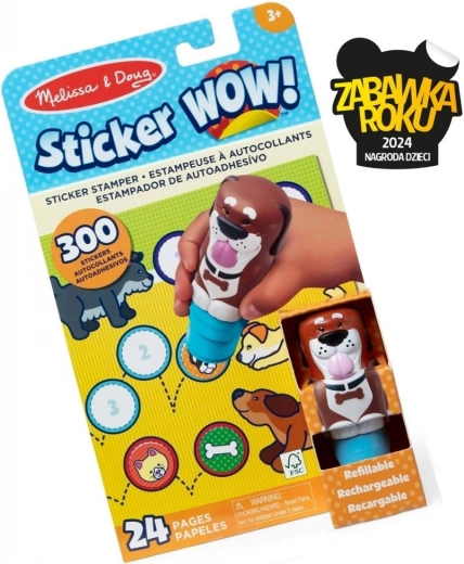 Sticker Wow! est un ensemble créatif incroyable de Melissa & Doug, grâce auquel chaque enfant profitera d'un amusement sans fin avec les tampons en forme de chien mignon ! Il suffit d'appuyer le tampon sur le papier et un autocollant coloré sur le thème des chiens et de leurs amis apparaît.