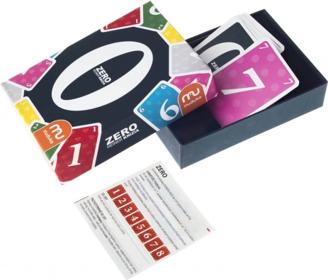 Zero est un jeu de cartes qui combine tactique, chance et sens de l’observation. L’objectif est clair : obtenir le moins de points possible et viser le score parfait : ZÉRO. Mais ce n’est pas si simple, car il faut compléter un set de cartes de la même couleur et un set de cartes de même valeur. Surveillez bien votre main pour ne pas garder trop de cartes hors set à la fin de la dernière manche. C’est un plaisir à jouer en toutes circonstances, et la petite boîte tient même dans une poche.