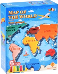 Ce kit artistique est idéal pour les enfants qui aiment les activités créatives. Il développe la déxtérité manuelle, l’imagination et la créativité. Le kit permet non seulement de créer les formes des continents, mais aussi d’apprendre leurs noms en anglais et d’élargir ainsi ses connaissances géographiques.