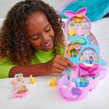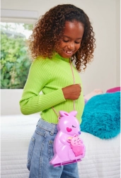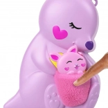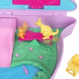 Découvrez un mini monde magique caché dans un sac à main en forme de kangourou. Une fois ouvert, les enfants trouvent différents niveaux avec des pièces – chambre pour bébés animaux, coin repas avec chaise haute et salle de bain avec baignoire. Il y a aussi un perchoir dans l’arbre pour le koala, une zone aquatique avec bassin et des éléments interactifs pour des histoires sans fin.