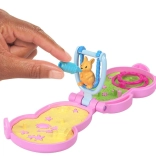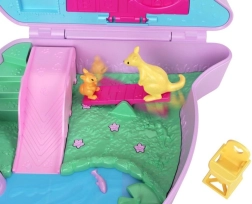 Le monde de poche de Polly Pocket dans un adorable sac à main en forme de kangourou offre une maison pliable pleine de mini pièces, d’éléments ludiques et d’amis animaux. Grâce à la bandoulière, le set est facile à transporter et idéal en voyage. À l’intérieur, vous trouverez une glissade, une balançoire, une piscine, un œuf secret avec un manchot ainsi que des accessoires pour prendre soin des animaux – de quoi stimuler le jeu et l’imagination sans fin.