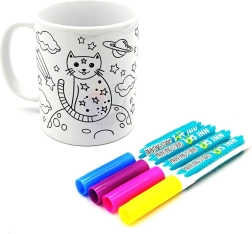 La tasse en céramique à colorier avec motif de chat est idéale pour la créativité des enfants. Elle permet aux enfants de décorer de manière originale leur propre tasse à l'aide des marqueurs inclus :