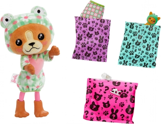 Découvrez le monde magique des surprises avec la mini-série BARBIE Cutie Reveal Chelsea. Chaque coffret contient une poupée Chelsea dans un adorable costume d’animal, un chien déguisé en grenouille, avec 6 surprises, des accessoires stylés et une transformation magique à l’eau. Le cadeau idéal pour les petits amoureux des animaux et du jeu imaginatif.