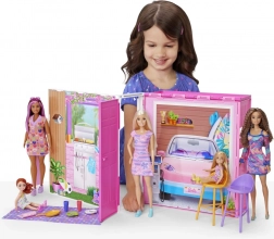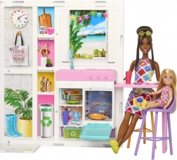 La boîte comprend une poupée BARBIE et 11 accessoires stylés – vaisselle, 2 petites chaises, une serviette ou une couverture – pour décorer l’intérieur et enrichir le jeu d’idées nouvelles. Les éléments graphiques, tels que le tri des déchets, les plantes, les panneaux solaires sur le toit ou la voiture électrique, initient subtilement les enfants à l’écologie.