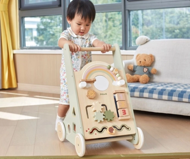 Le chariot de marche en bois stylé pour tout-petits de la série PolarB de Viga combine un soutien pour les premiers pas et un panneau d’activités multifonction pour jouer et apprendre. On y trouve des roues dentées, un tri de formes, un miroir, des perles, des éléments coulissants et une mini ardoise. Il favorise la motricité fine et globale, la coordination et la confiance en soi lors de la marche.