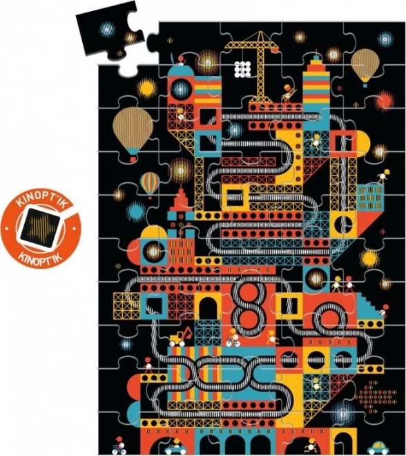 Les puzzles magnétiques Kinoptik jouent avec l’illusion d’optique. Chaque image comporte une série de lignes qui, lorsqu’on fait glisser la plaque en plastique noire fournie, créent une impression de mouvement.