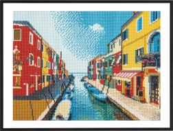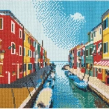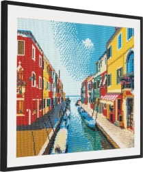 La peinture diamant est une activité créative pour tous – vous placez progressivement de petites pierres colorées sur une toile pré-imprimée à l’aide d’un stylo applicateur. Le motif romantique du canal d’eau se distingue par l’éclat des strass et se transforme en une décoration originale pour votre intérieur.