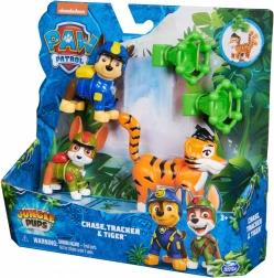 Crée tes propres aventures avec Chase, Tracker et leur ami tigre. Chase, Tracker et le tigre mesurent plus de 5 cm de haut et ressemblent exactement aux personnages de la série télévisée. Quand vient le moment d’une mission de sauvetage palpitante, fixe la balle à filet à la queue du tigre, tire la queue le plus loin possible, puis appuie sur le bouton pour tirer et sauver la situation. Utilise ton imagination pour rejouer tes épisodes préférés de Pat' Patrouille : Patrouille dans la jungle ou inventer des missions totalement nouvelles. Pour encore plus de fun et de missions trépidantes inspirées de la série Pat' Patrouille, collectionne tous les jouets du film Pat' Patrouille : Patrouille dans la jungle et Pat' Patrouille : Le super film, comme l’incroyable dirigeable de commandement, ainsi que tous les jouets spéciaux Pat' Patrouille pour filles et garçons, tels que les figurines et ensembles Super Chiots, Patrouille aquatique et Grand camion (chacun vendu séparément). Avec les jouets Pat' Patrouille pour les préscolaires, les enfants peuvent explorer leur imagination en jouant, développer leurs compétences motrices et revivre leurs scènes préférées de la série. Profite d’aventures sans fin avec le set de figurines Chase, Tracker et Tigre de la Patrouille dans la jungle.