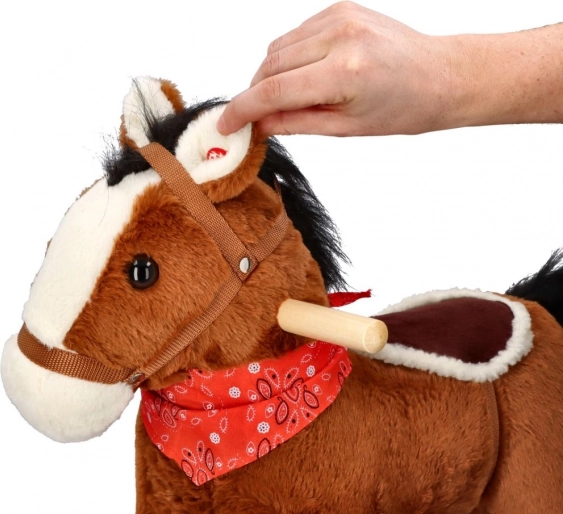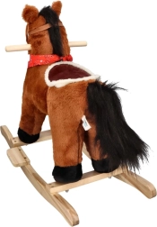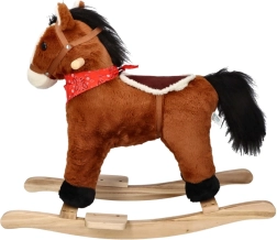 Le cheval à bascule de couleur brune, avec sa surface en peluche douce, sa selle et son foulard décoratif, est le compagnon idéal pour le jeu quotidien. Grâce au berceau en bois solide, l’enfant peut se balancer en toute sécurité, développer sa motricité et entraîner sa coordination.