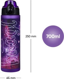 Bouteille d’eau en tritan au design galaxie de 700 ml, idéale pour l’école, les sorties et le sport. Elle dispose d’un couvercle verrouillable, d’un joint étanche et d’une dragonne de transport pratique. Fabriquée en tritan certifié sans BPA – inodore et sûre pour un usage quotidien.