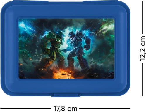 Découvrez la boîte à goûter innovante pour tous les amoureux de science-fiction et de robots. Cette boîte à déjeuner en plastique bleue allie style et praticité. Elle est équipée d’une fermeture sécurisée à loquet unique, garantissant que vos aliments restent en sécurité à l’intérieur. Grâce aux cloisons de séparation, il est facile de séparer différents types de plats pour un déjeuner propre et ordonné.