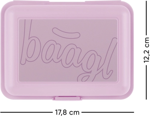 Profitez du confort avec la boîte à goûter violette Baagl. Idéale pour stocker divers aliments grâce à une cloison diviseur permettant de séparer différents produits. Avec une fermeture à un seul verrou, soyez assuré que vos aliments resteront frais et bien fermés.