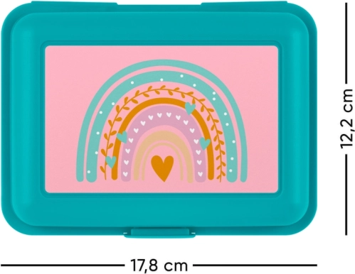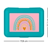 Faites de votre pause un moment stylé avec notre boîte à déjeuner Arc-en-ciel couleur turquoise. Cette boîte en plastique fonctionnelle est idéale pour un usage quotidien grâce à une fermeture à serrure unique et un système de séparation intérieur pratique. La boîte est conçue pour être résistante et facilement transportable, ce qui en fait un atout pour l’école et le travail.