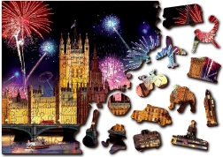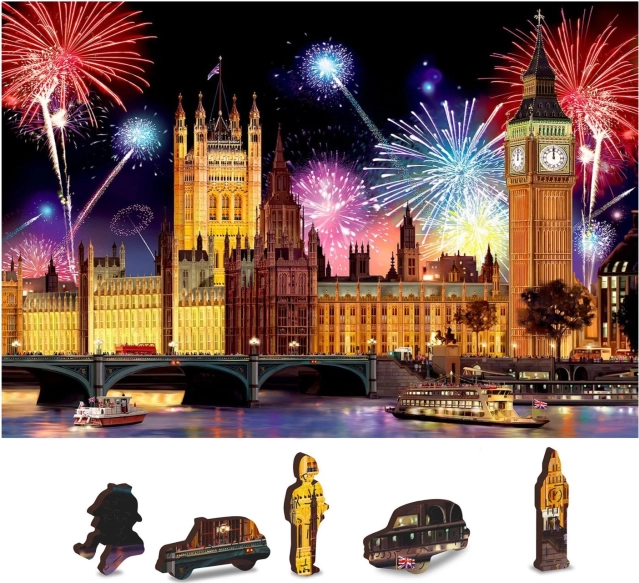 Ce puzzle en bois apporte des moments inoubliables de plaisir grâce à son design recto-verso, permettant de s'assembler selon l'image ou la forme. Avec des pièces de formes uniques représentant des bâtiments londoniens célèbres, des objets ou des animaux, ce puzzle est plus difficile à terminer, augmentant la joie d'une réussite.