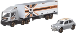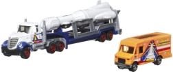 Partez à l'aventure avec le convoi MATCHBOX : le tracteur avec semi-remorque et la voiture inspirent des histoires venues des rues de la ville, des chantiers et des autoroutes. Grâce à sa cabine amovible et à des proportions soignées, le jeu est naturel, polyvalent et amusant.