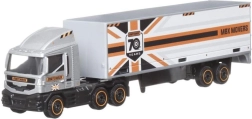 Le tracteur avec semi-remorque et la voiture forment un duo d'action pour des scénarios de transport et de logistique. La cabine est amovible et l'ensemble mesure environ 17,5 cm.