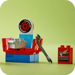 Alimentez votre imagination et profitez de la construction et du jeu avec cet ensemble inspiré par le film Cars. Retouchez Flash McQueen dans l'atelier pour qu'il soit prêt à gagner chaque course !